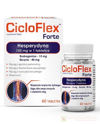 CicloFlex Forte to suplement diety wspierający prawidłowe krążenie żylne i redukcję uczucia ciężkości nóg.